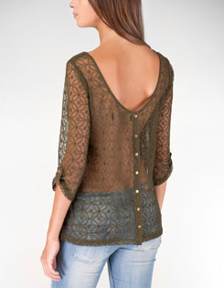 Camicia pizzo e bottoni Verde oliva Stradivarius costo 22,95€